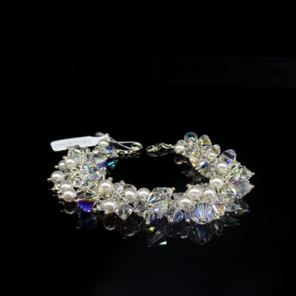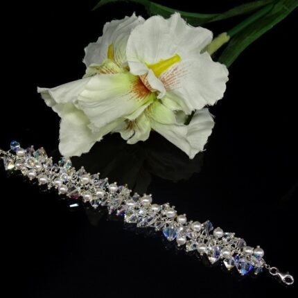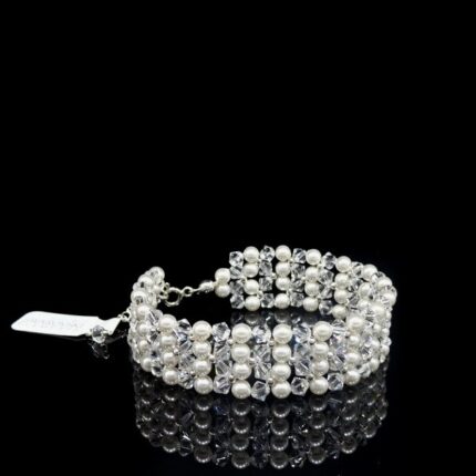 BRANSOLETKA srebrna z kryształkami Precioso i perełami