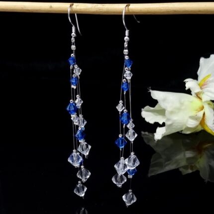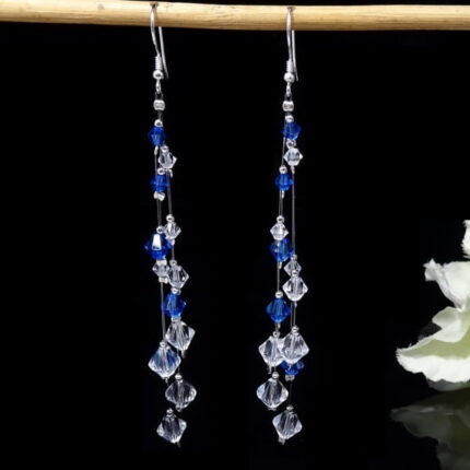 KOLCZYKI długie z kryształków Precioso z niebieskimi refleksami