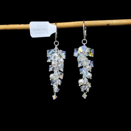 KOLCZYKI w kształcie gronek z kryształków Precioso i pereł