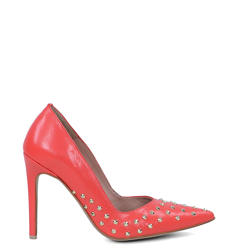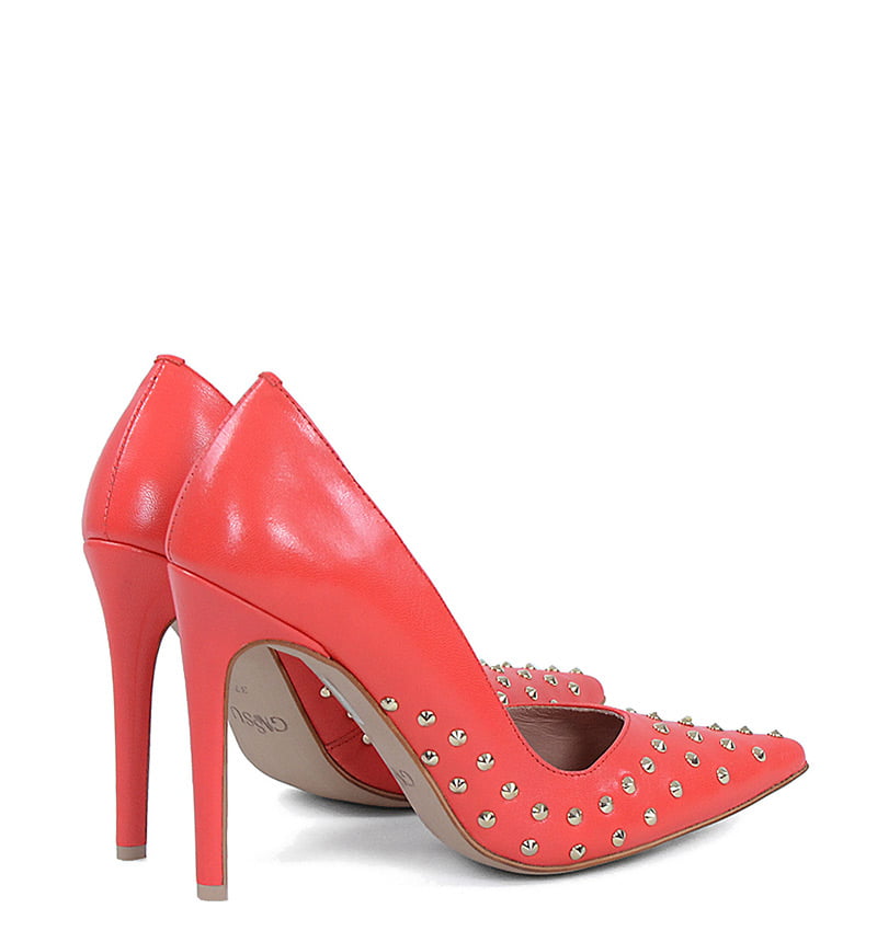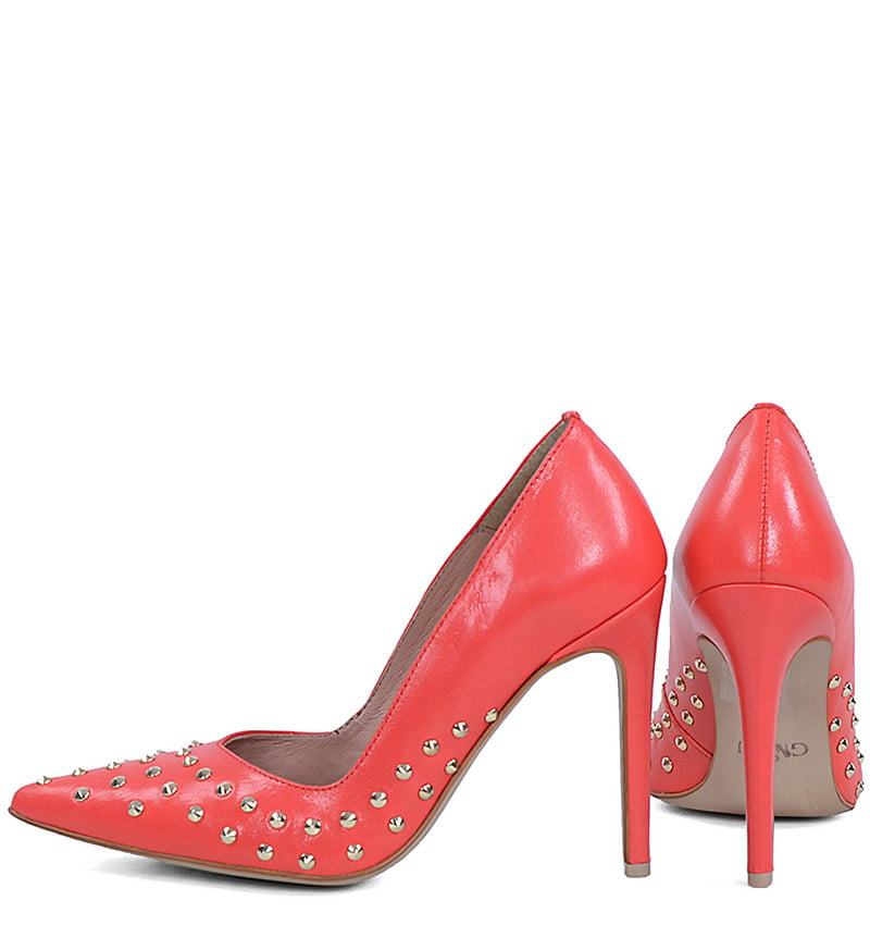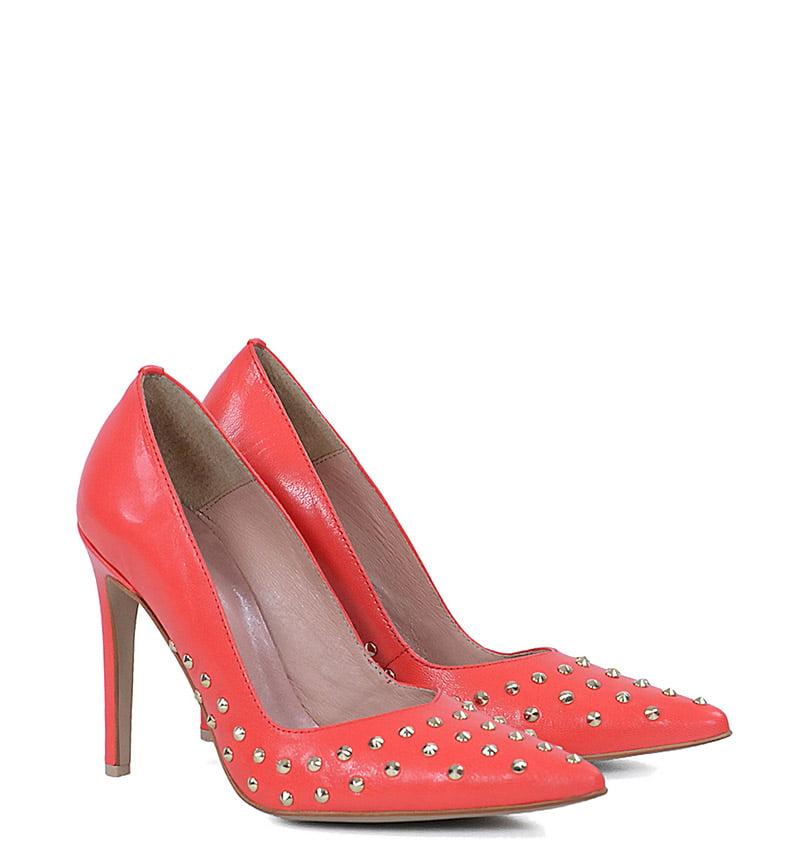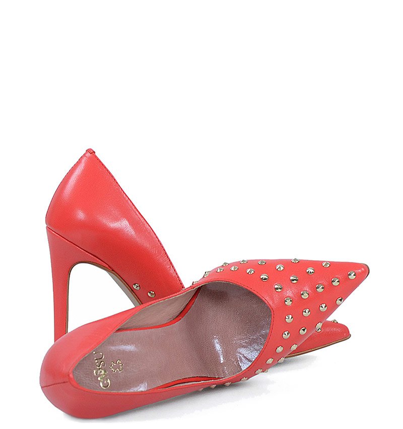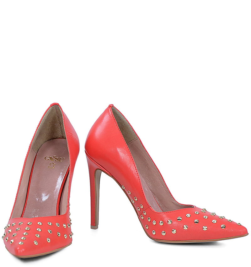 ANAHIT – Czerwone szpilki z dżetami, licowa skóra