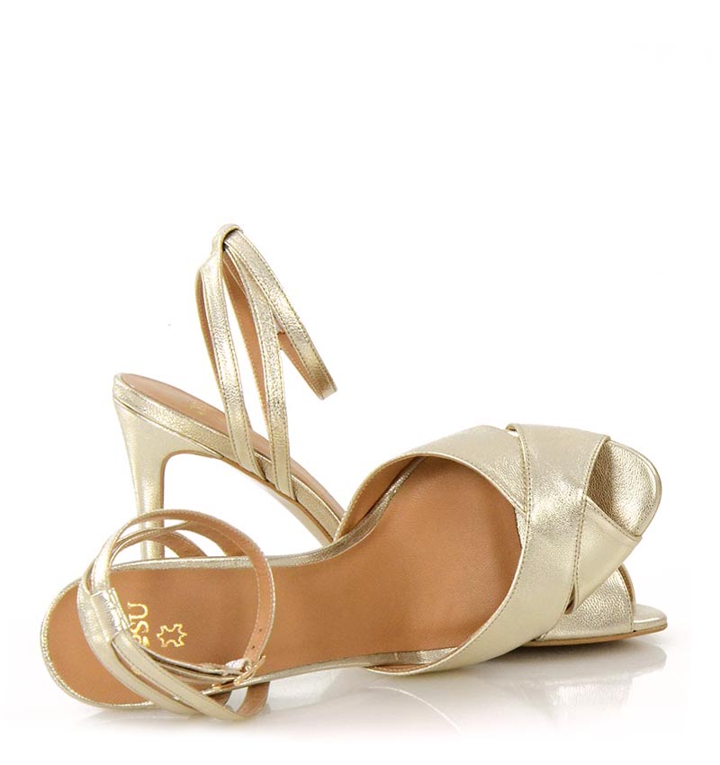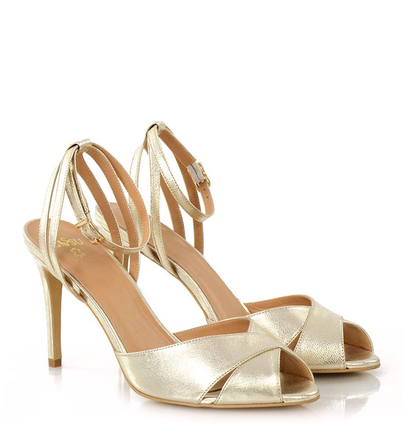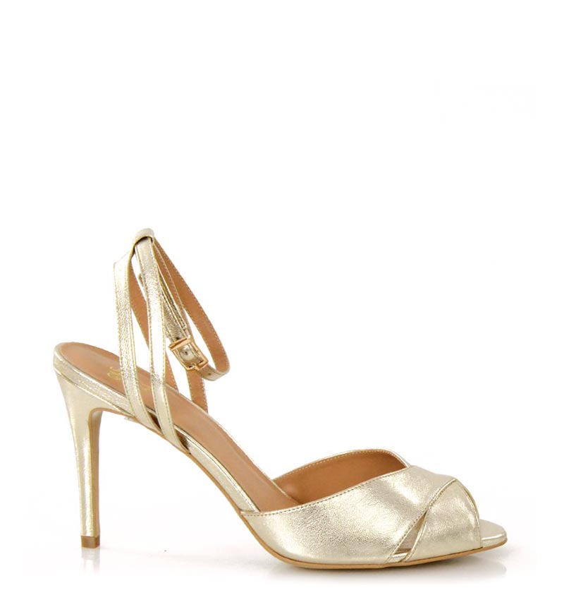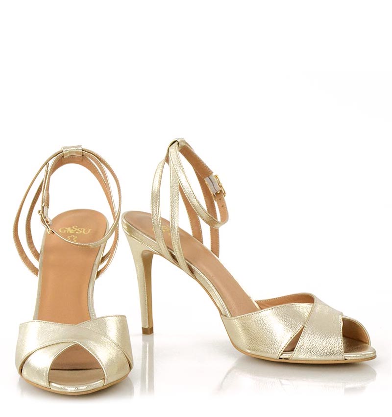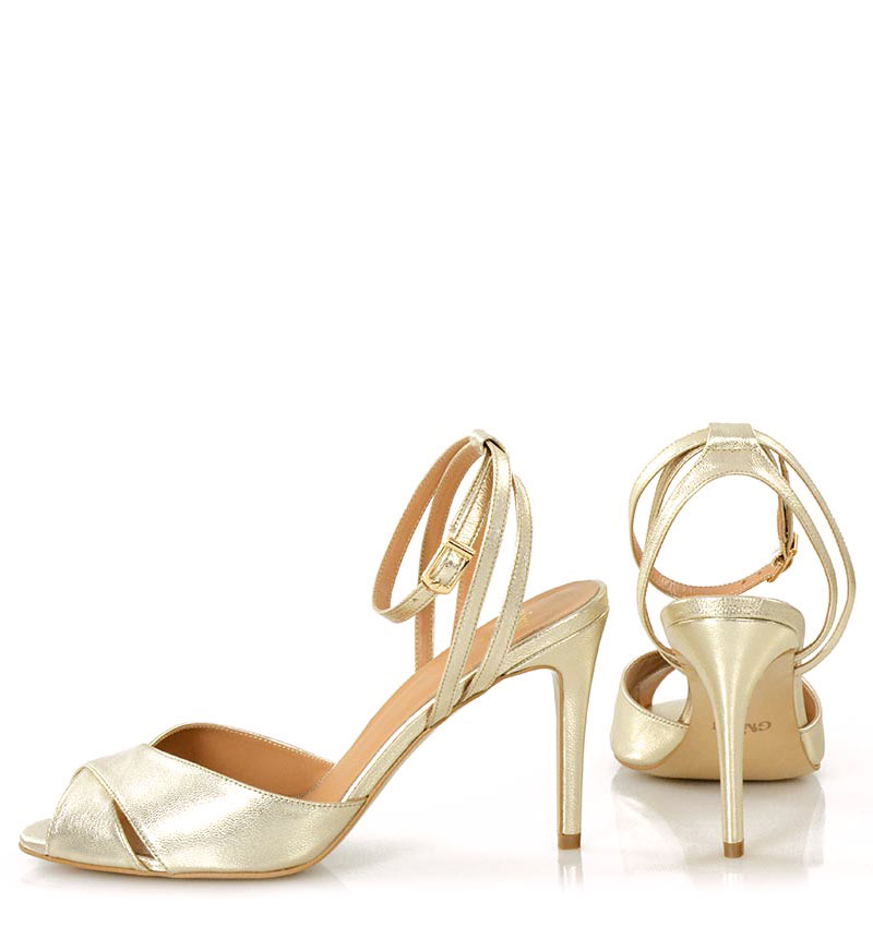 CAROLYN – Złote sandały na szpilce z odkrytą piętą