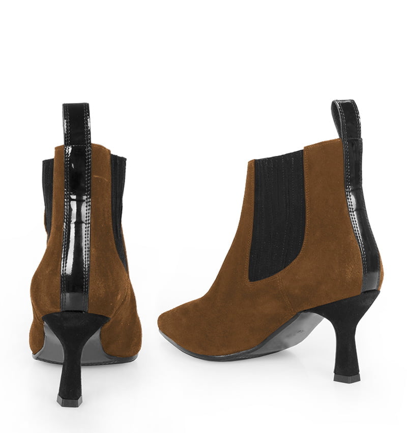 DAGA – Brązowe botki wsuwane za kostkę na szpilce