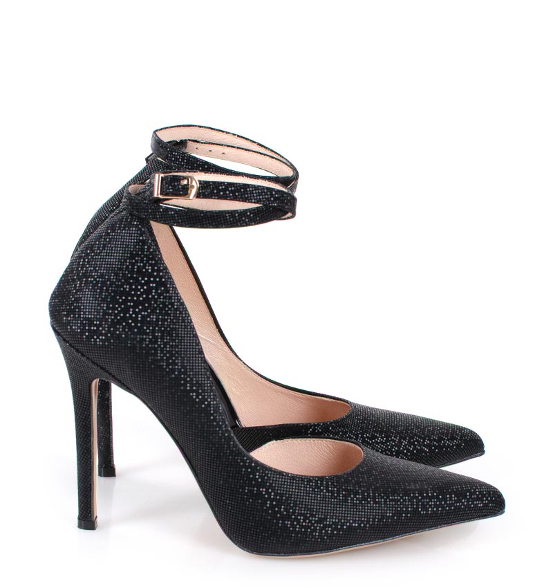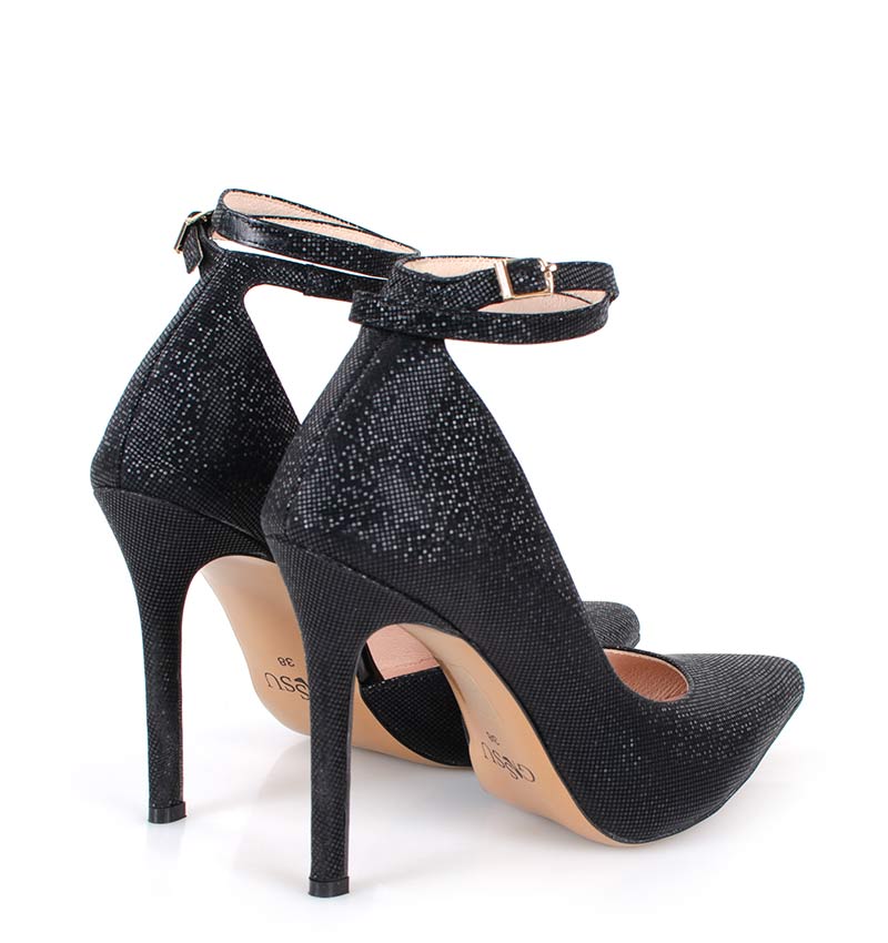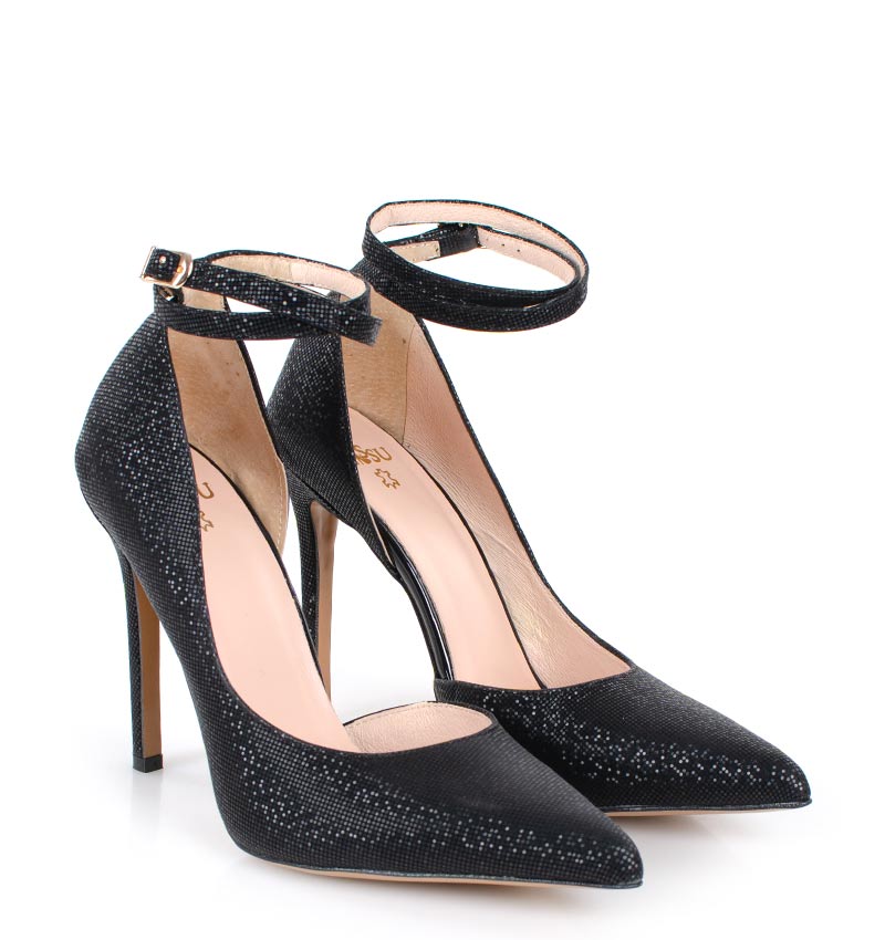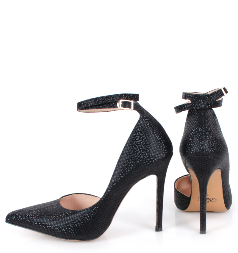 DENISE – Czarne szpilki z paskiem błyszczące