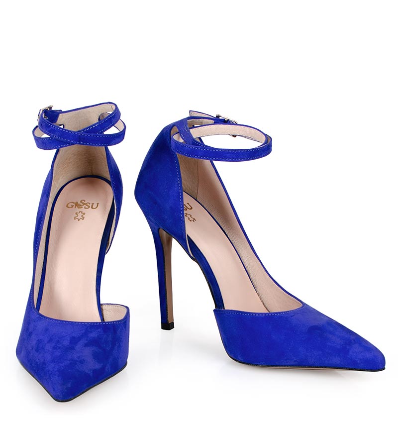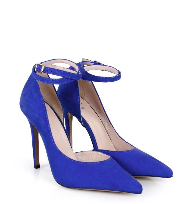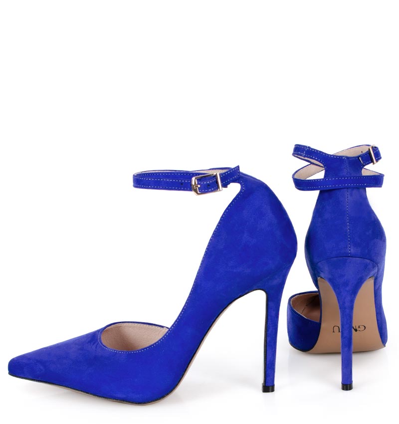 DENISE – Niebieskie zamszowe szpilki z paskiem