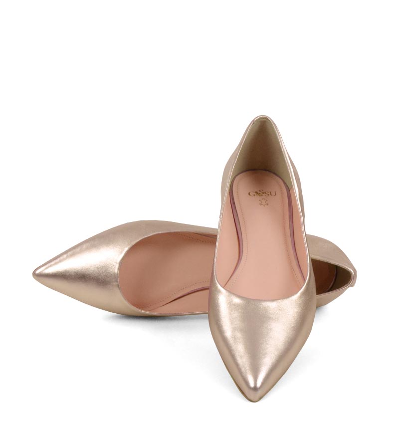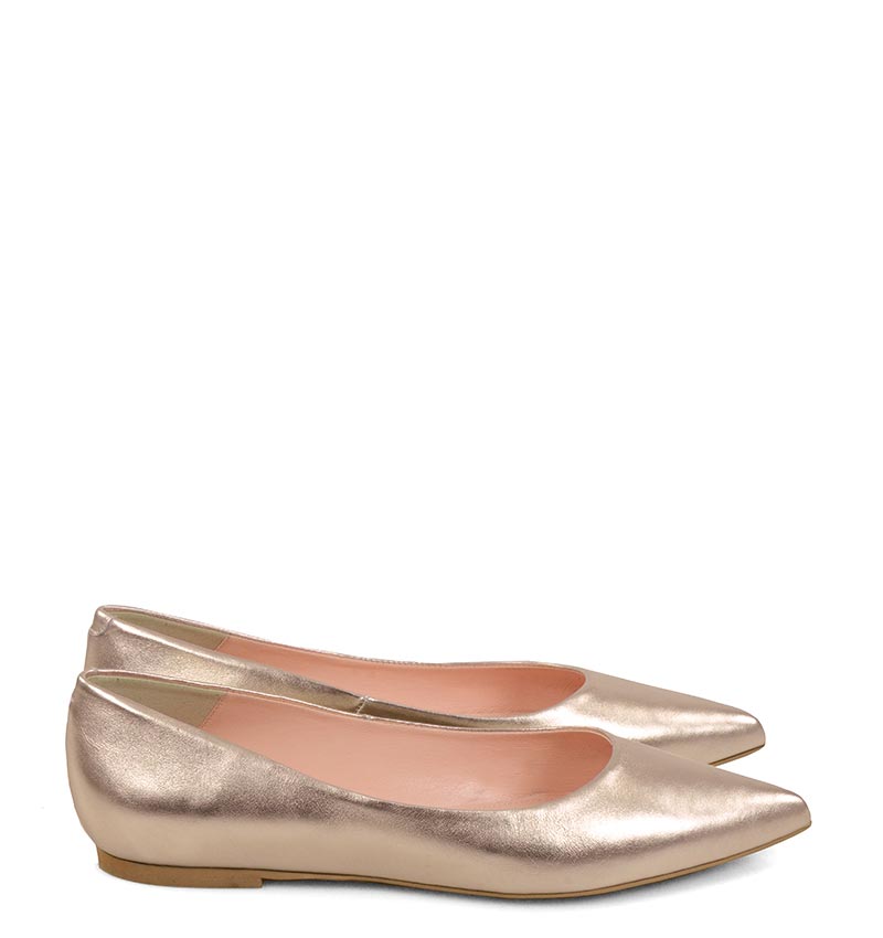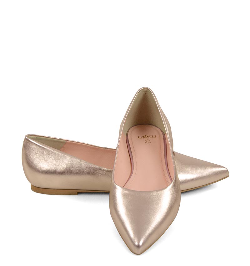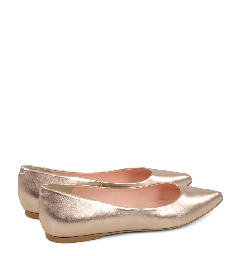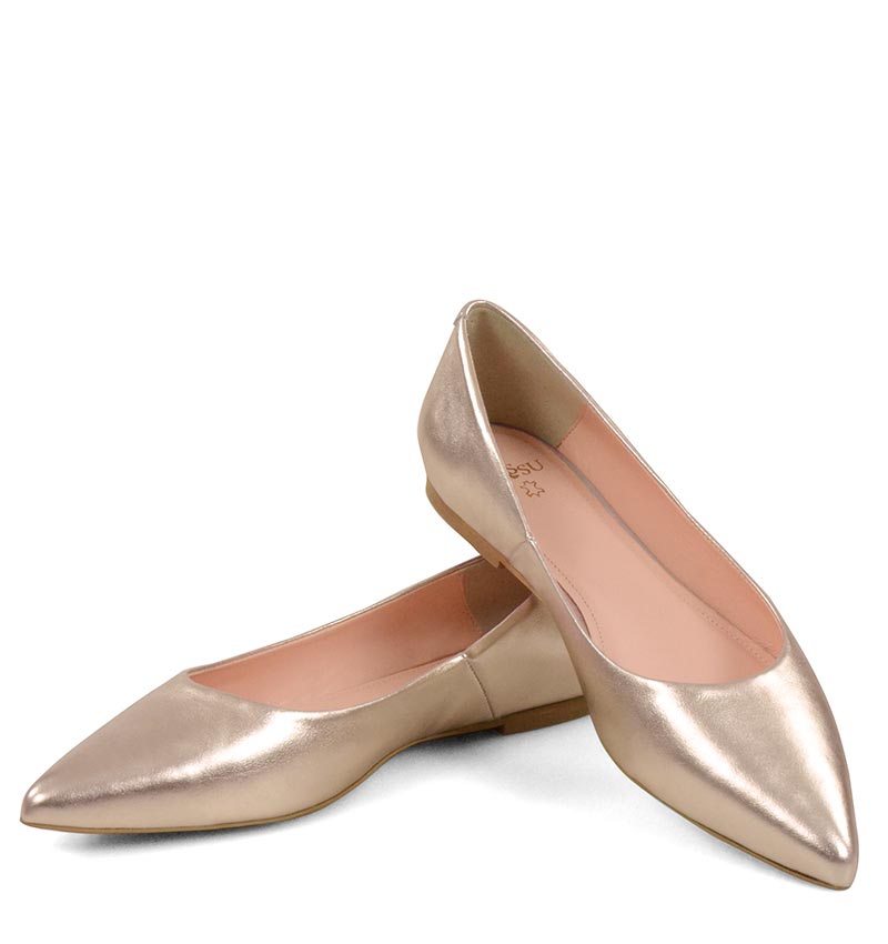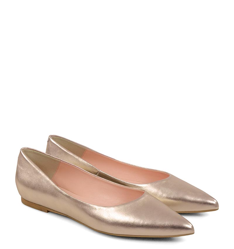 EMILY – Złoto różowe baleriny ze skóry nosek w szpic