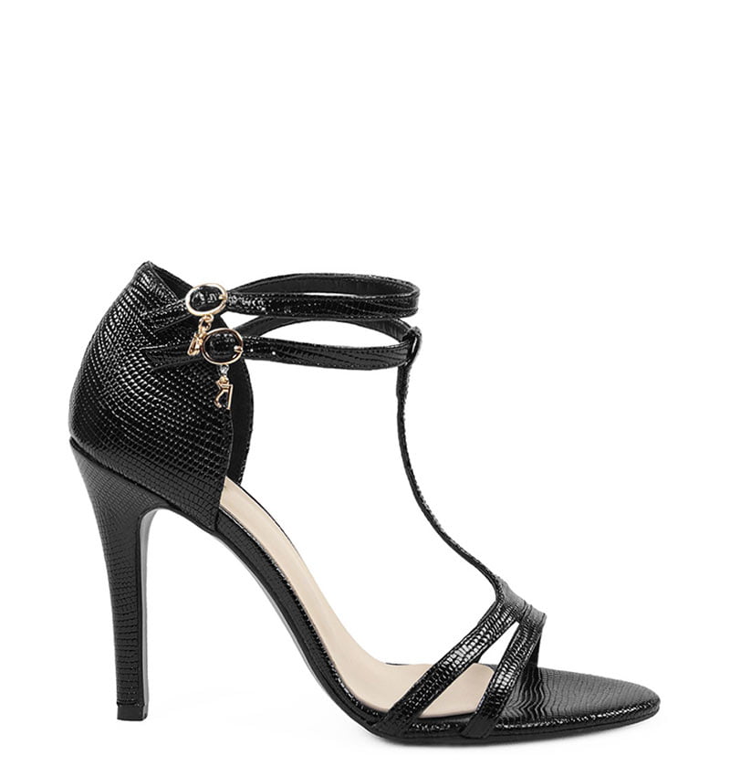 ERIN – Czarne sandałki na szpilce t-strap