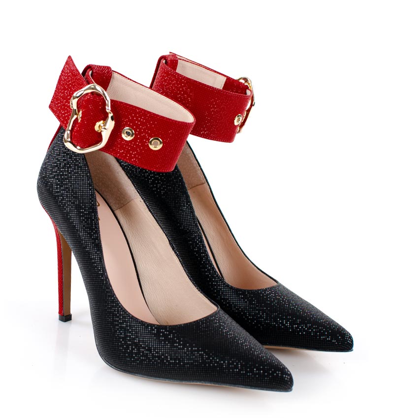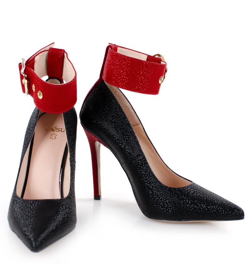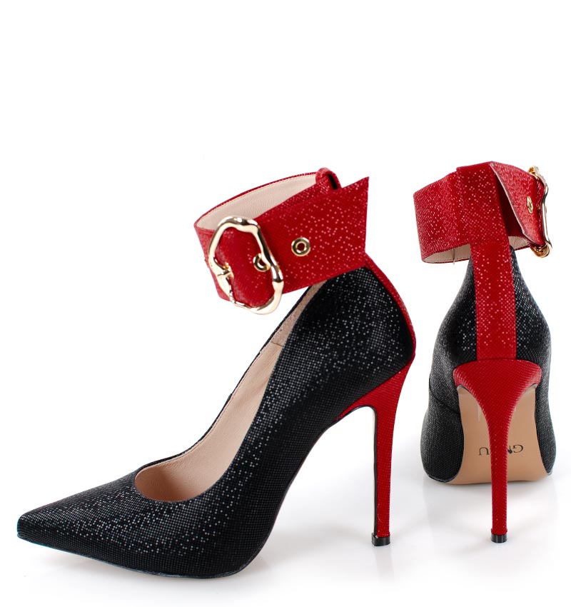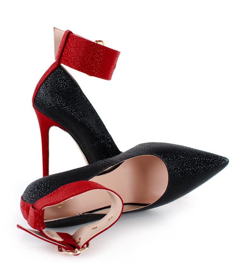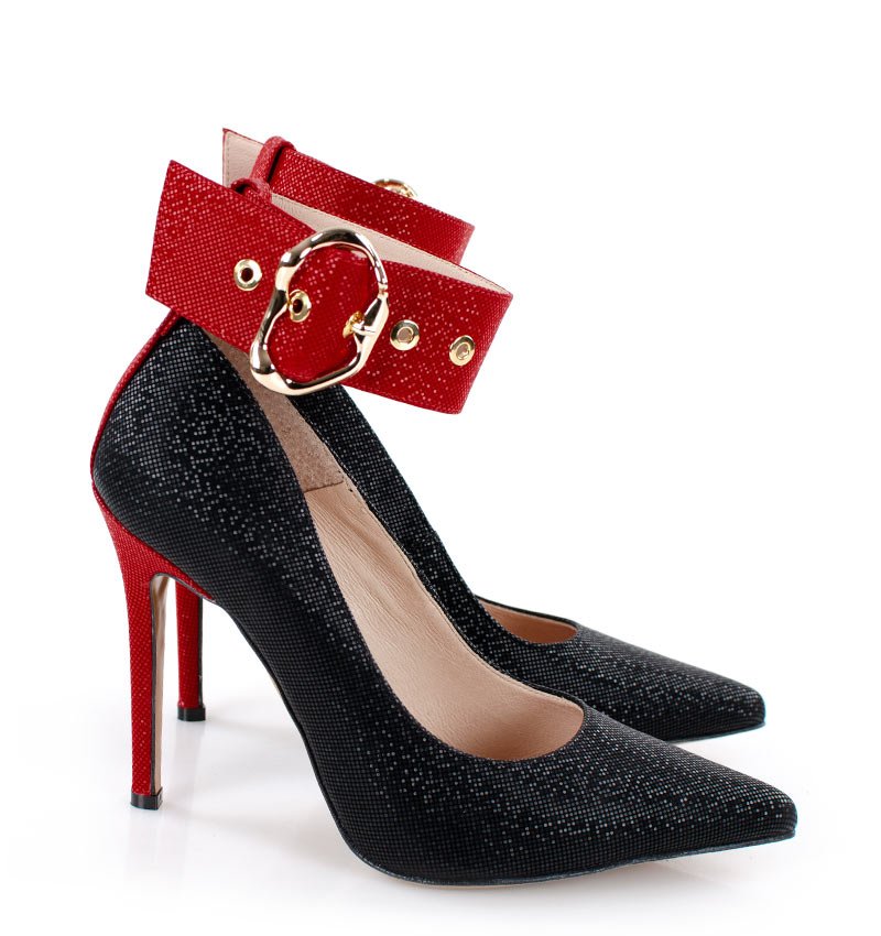 GLORIA – Czarne szpilki z czerwonym paskiem