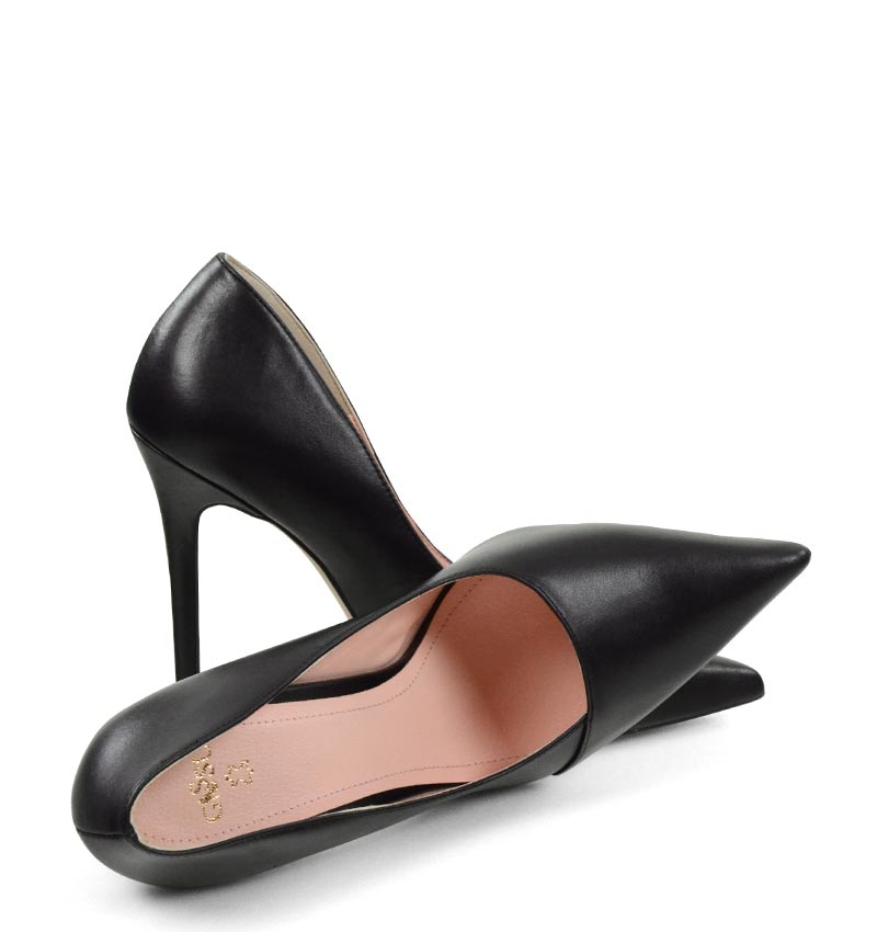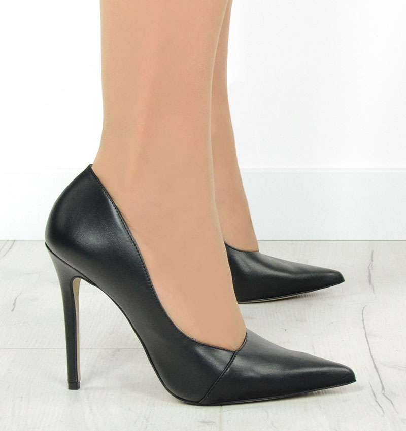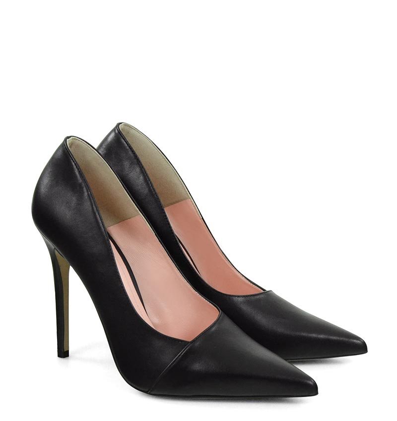 HAILEY – błyszczące, czarne wysokie szpilki na 11,5 cm obcasie (wysokość obcasa jest mierzona w rozmiarze 37). Czubek w szpic. Szpilki wykonane z naturalnej skóry licowej. Wysokość obcasa sprawia, że są to bardzo efektowne czółenka na szpilce. Tęgość butów: F 1/2. Wnętrze butów i wkładka wykonane są z koziej skóry naturalnej.