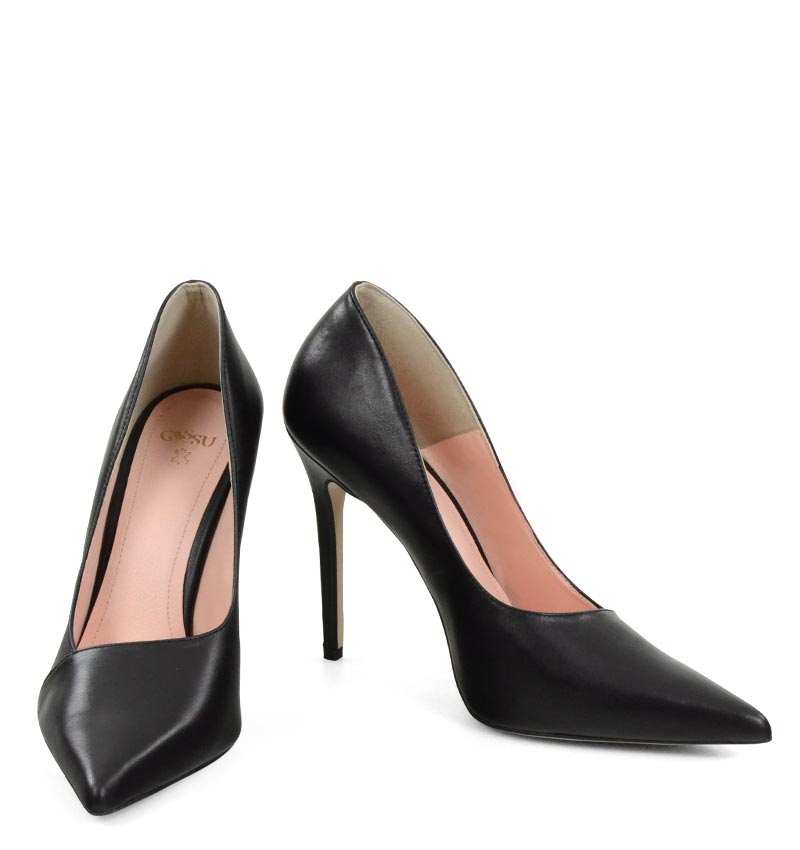 HAILEY – Wysokie czarne szpilki z licowej skóry