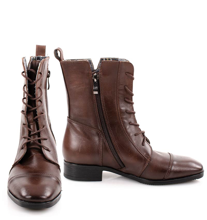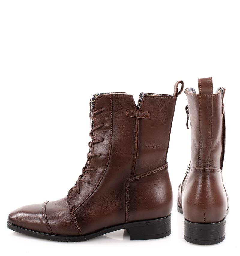 HANNAH – Brązowe botki na płaskim obcasie sznurowane i zapinane na zamek