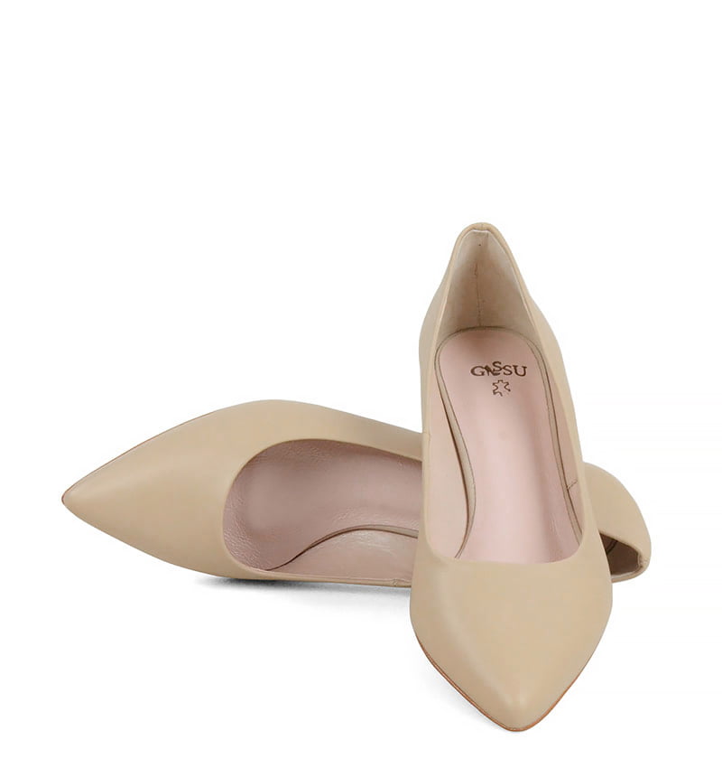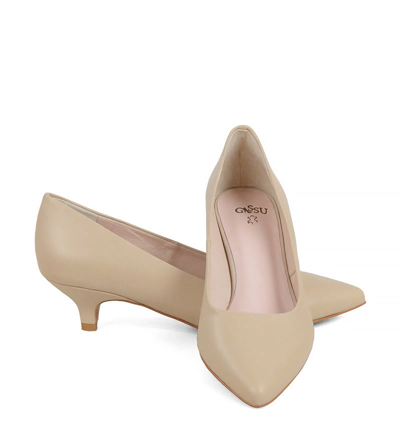 JESSICA – Beżowe niskie szpilki z licowej skóry