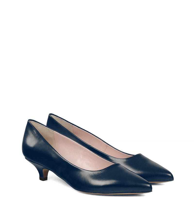 JESSICA – Granatowe szpilka na niskim obcasie z licowej skóry