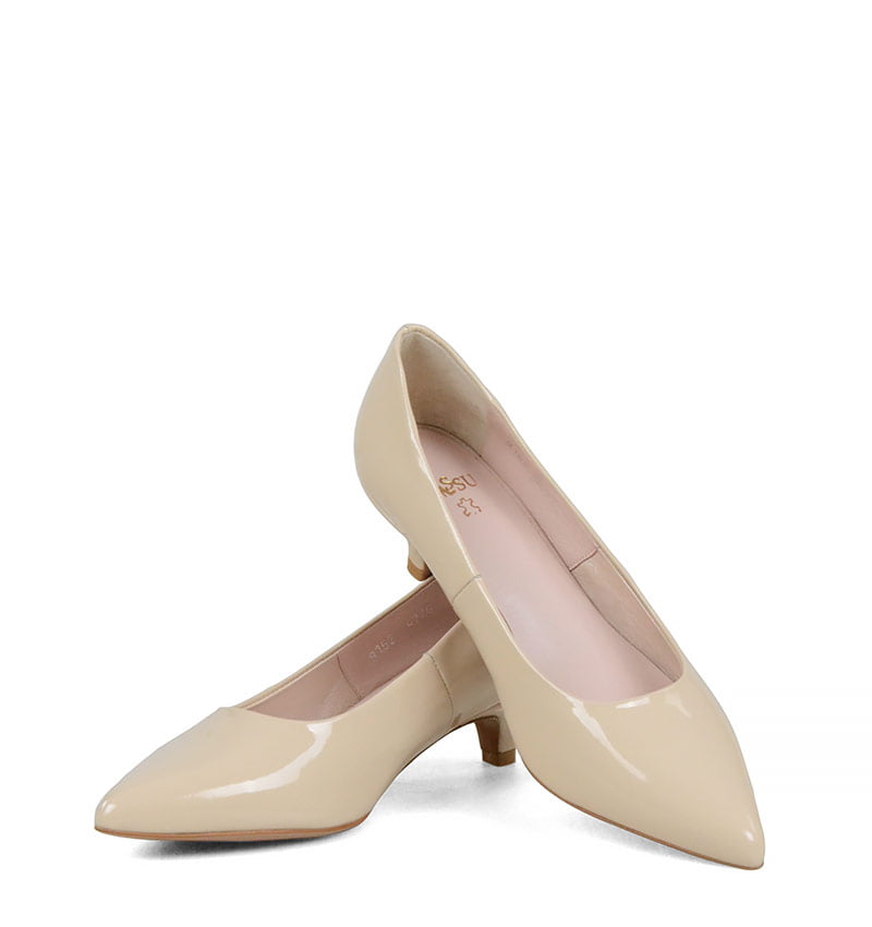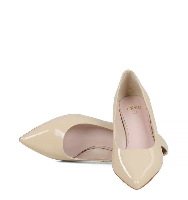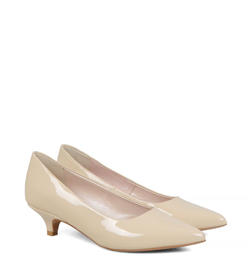 JESSICA – Jasne beżowe szpilka na niskiej szpilce z lakierowanej skóry