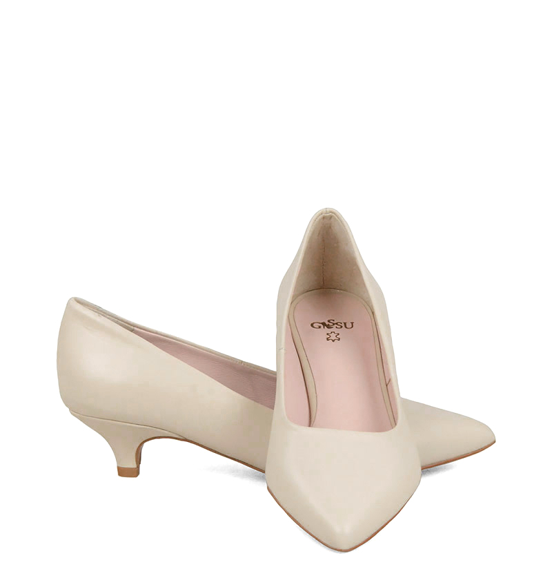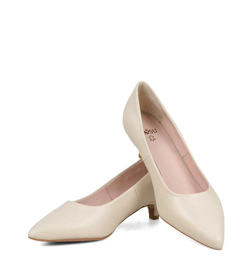 JESSICA – Jasno beżowe niskie szpilki na 4 cm obcasie (wysokość obcasa jest mierzona w rozmiarze 37). Czubek w szpic. Buty wykonane z naturalnej skóry matowej, układającej się do stopy. Niska wysokość obcasa sprawia, że są to bardzo wygodne czółenka na szpilce. Tęgość butów: G. Wnętrze butów i wkładka wykonane są ze skóry naturalnej.