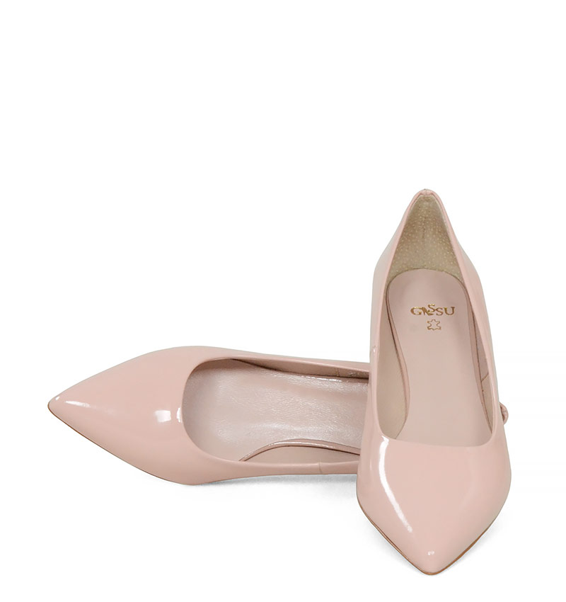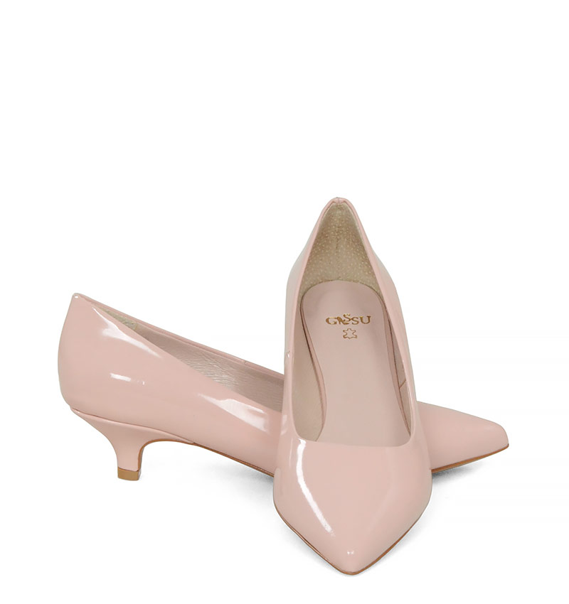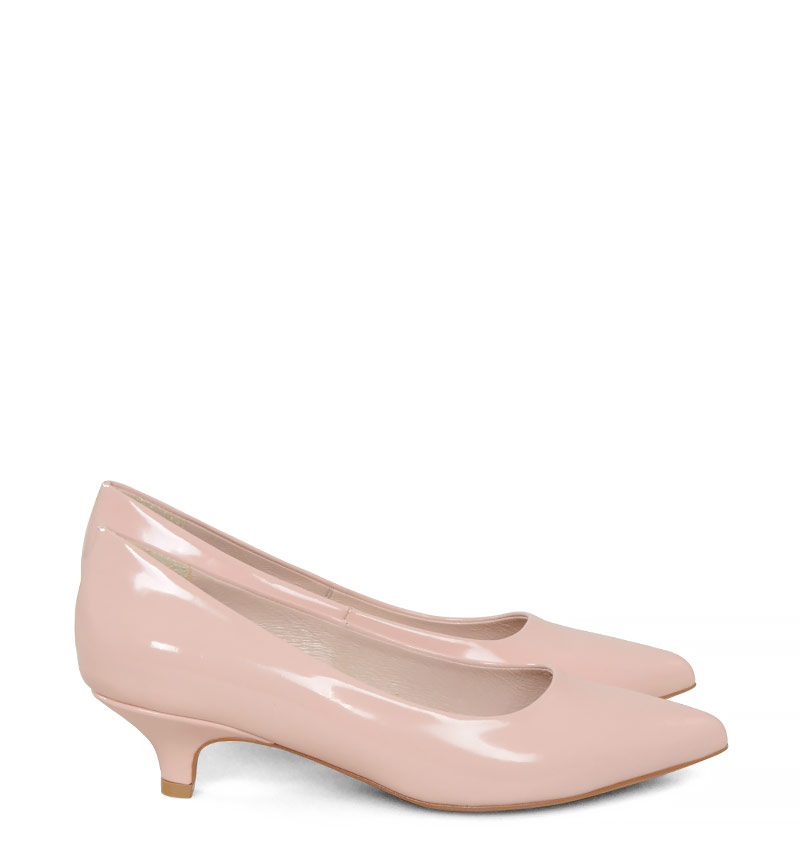 JESSICA – Różowe szpilki na niskim obcasie z lakierowanej skóry
