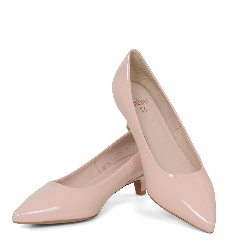 JESSICA – Różowe niskie szpilki na 4 cm obcasie (wysokość obcasa jest mierzona w rozmiarze 37). Czubek w szpic. Buty wykonane z naturalnej skóry lakierowanej, układającej się do stopy. Niska wysokość obcasa sprawia, że są to bardzo wygodne czółenka na szpilce. Tęgość butów: G. Wnętrze butów i wkładka wykonane są ze skóry naturalnej.