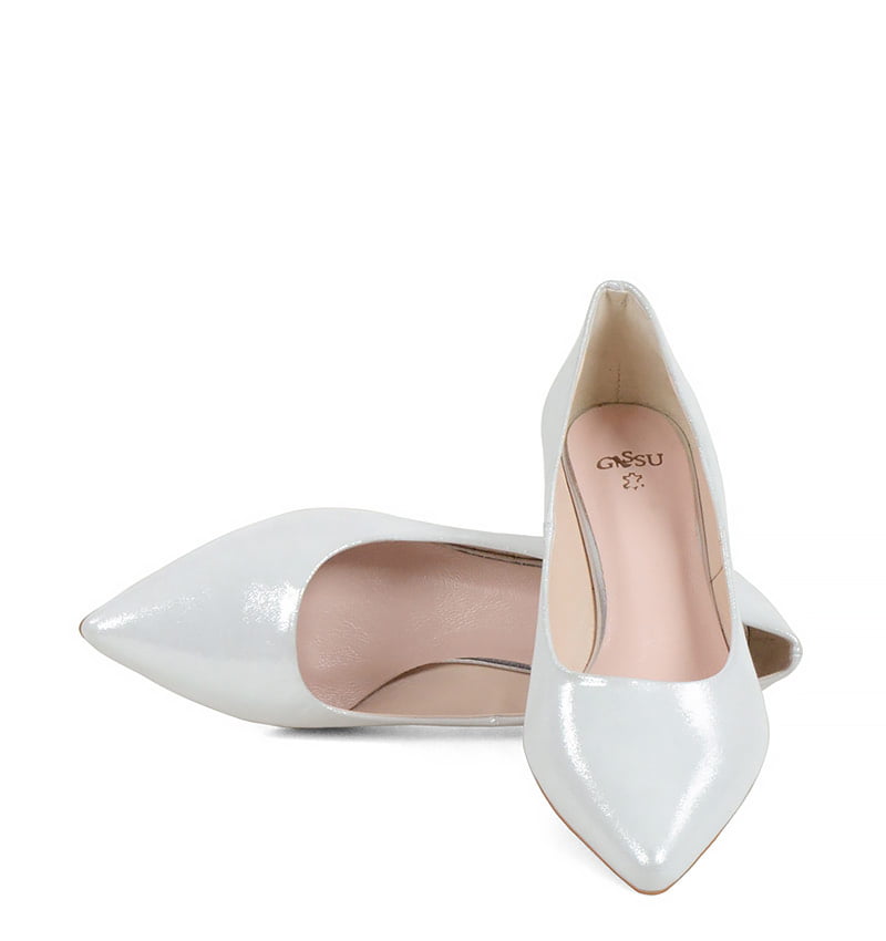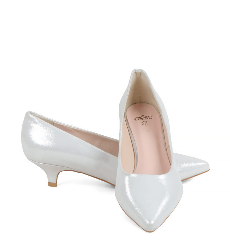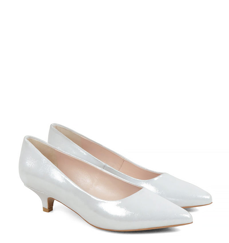 JESSICA – Srebrne, niskie szpilki z satynowanej skóry