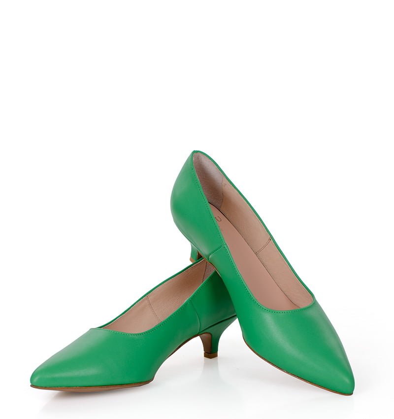 JESSICA – Zielone szpilki niski obcas licowa skóra