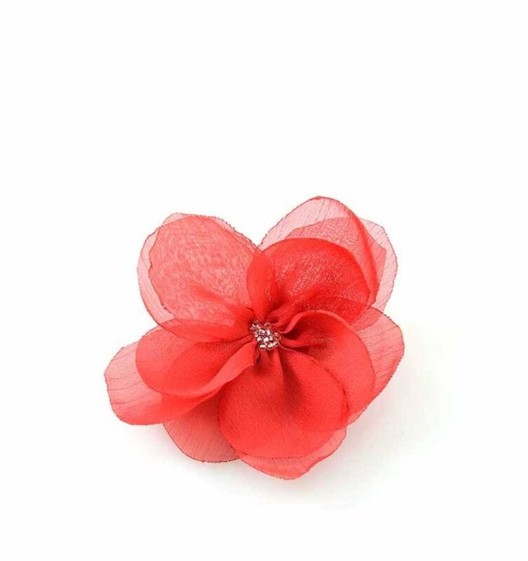 Kwiaty wykonane z granatowego szyfonu i uzupełnione połyskującymi kryształkami w środku
