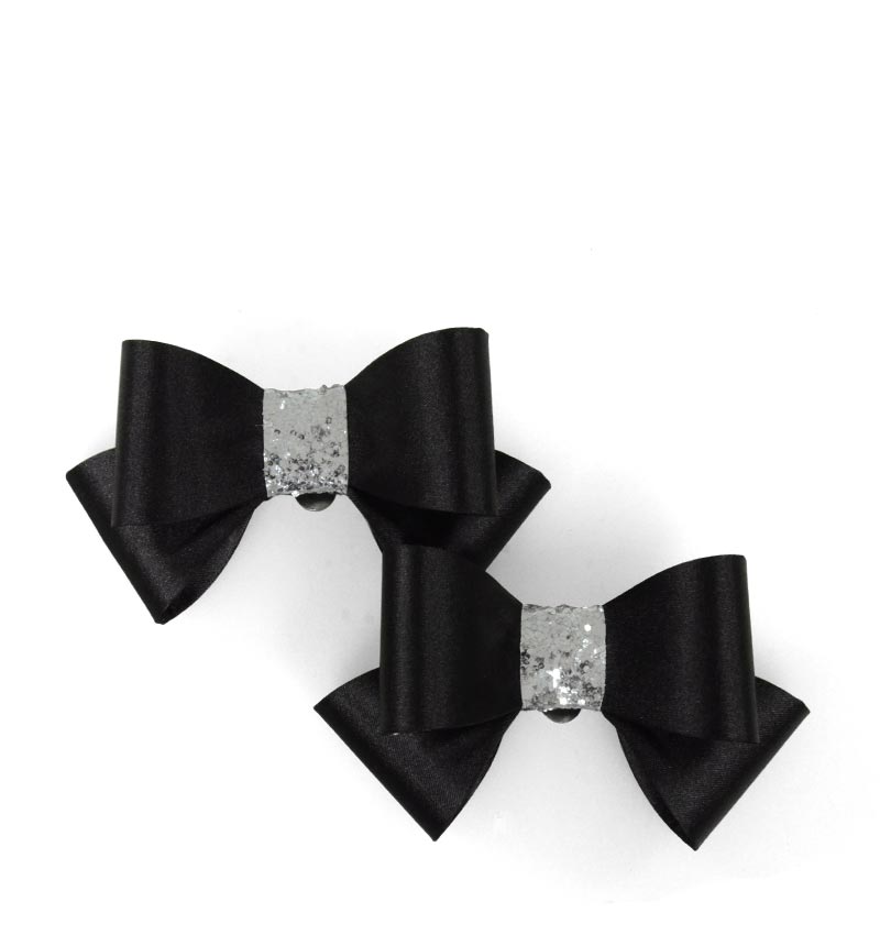 Podwójna czarna kokarda ze srebrnym środkiem.