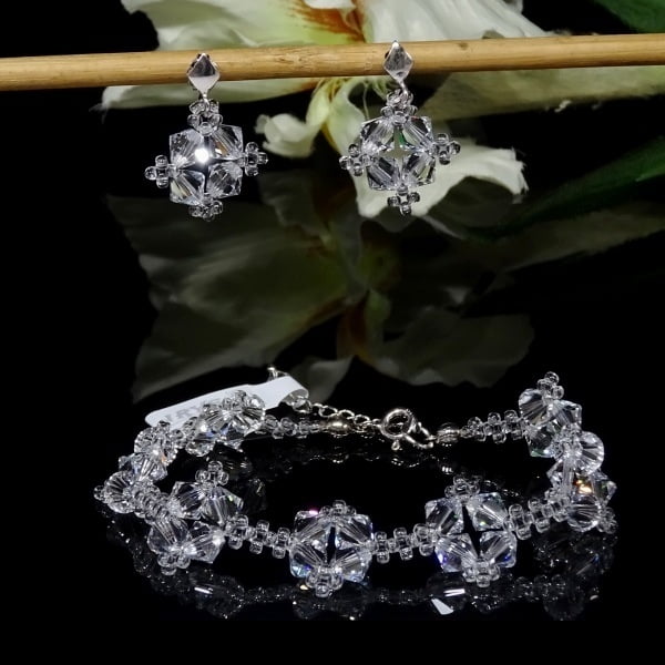 Subtelne, drobne kolczyki wykonane z kryształów Precioso oraz japońskich koralików Toho w kolorze crystal.