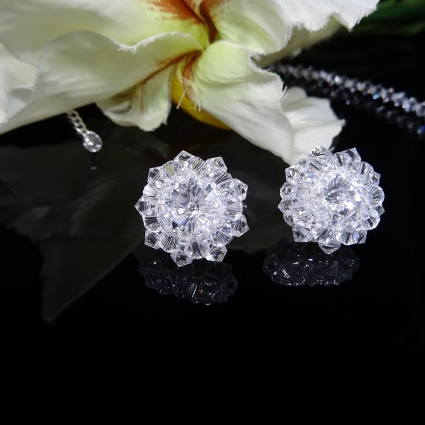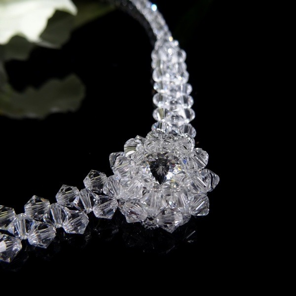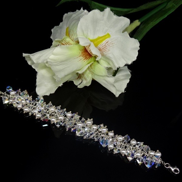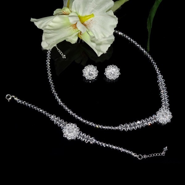 Komplet biżuterii ślubnej – Efektowne kolczyki wraz z bransoletką i naszyjnikiem stanowią niepowtarzalny zestaw.