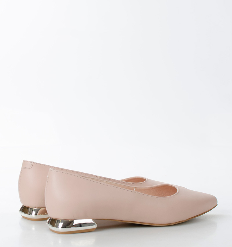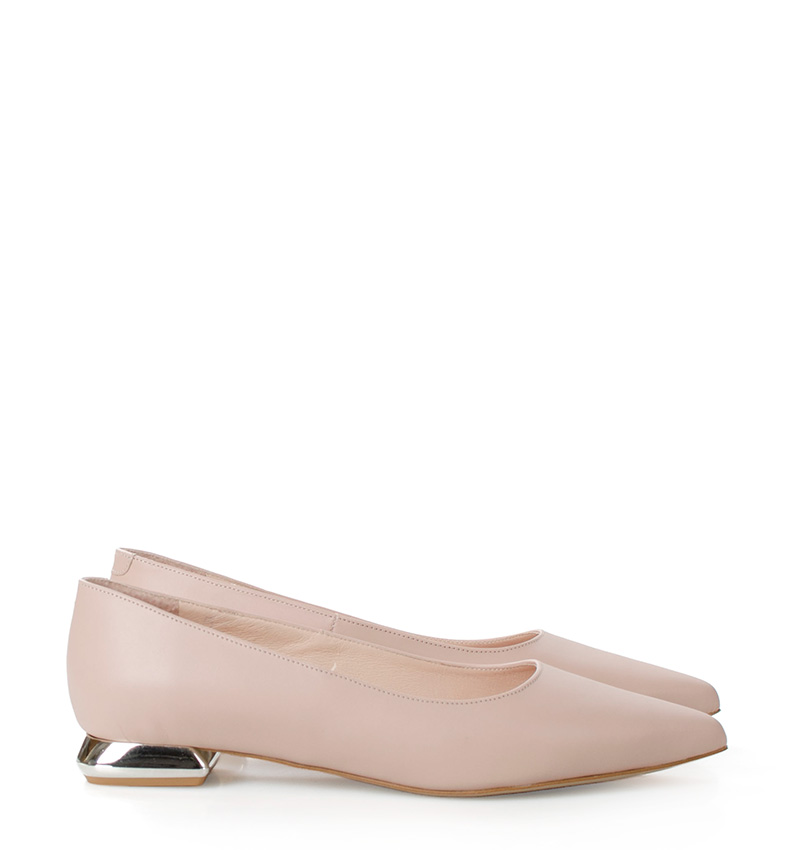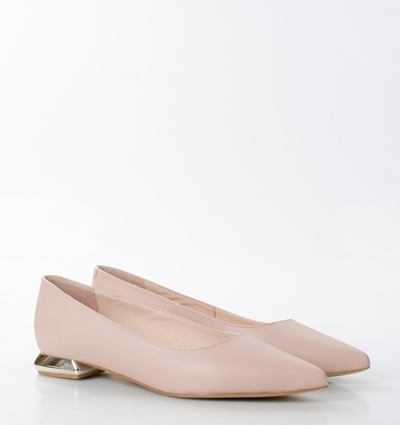 KORA baleriny w kolorze pudrowego różu. Czubek klasyczny w szpic, ozdobny obcas. Buty wykonane z naturalnej skóry licowej, układającej się do stopy. Płaski 2,5 cm obcas sprawia, że są to bardzo wygodne baleriny. Tęgość butów: F 1/2. Wnętrze butów i wkładka wykonane są ze skóry naturalnej.