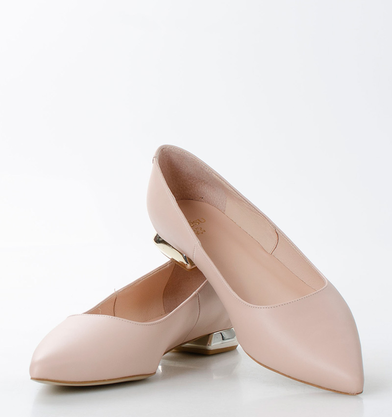 KORA – jasnoróżowe baleriny licowa skóra na płaskim obcasie