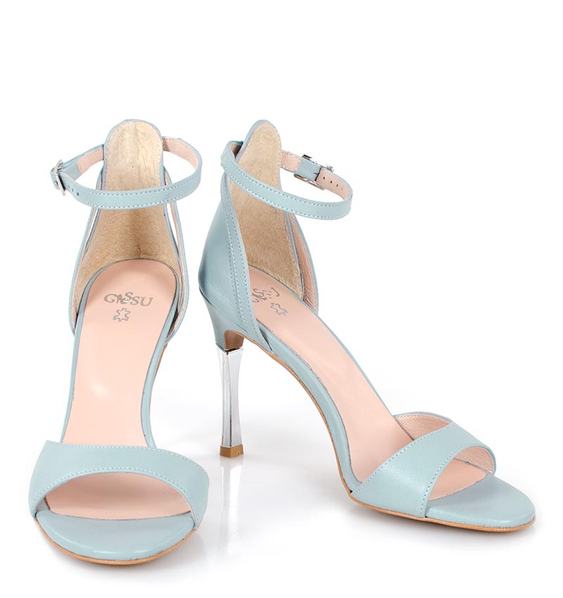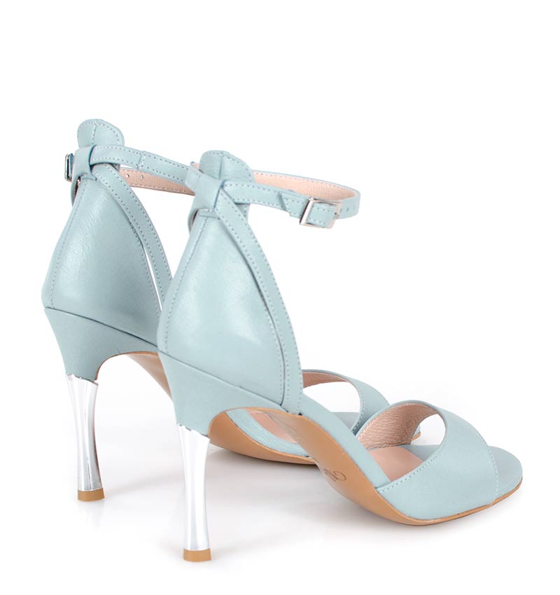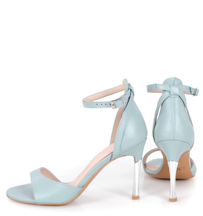 MEGAN – Błękitne sandały srebrna szpilka licowa skóra