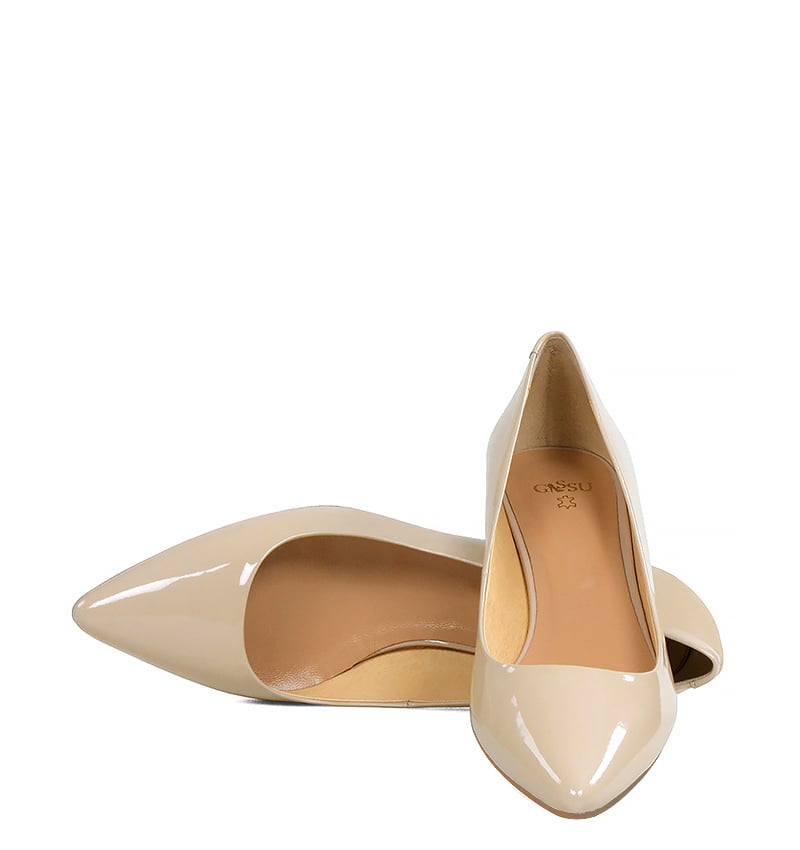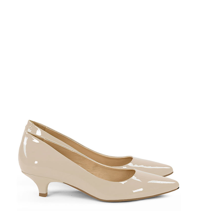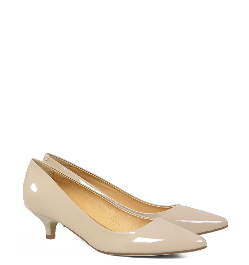 MICHELLE – Beżowe szpilka na niskim obcasie z lakierowanej skóry