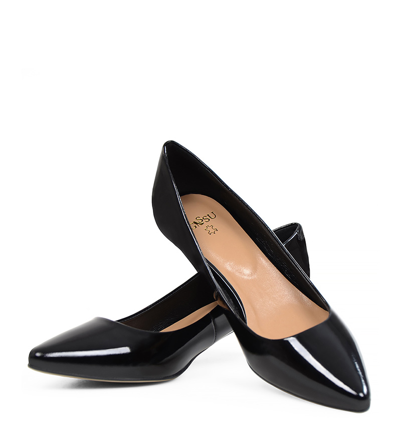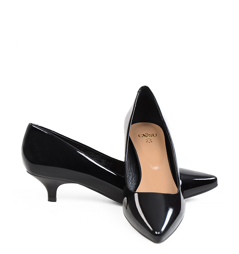 MICHELLE – Czarne niskie szpilki z lakierowanej skóry