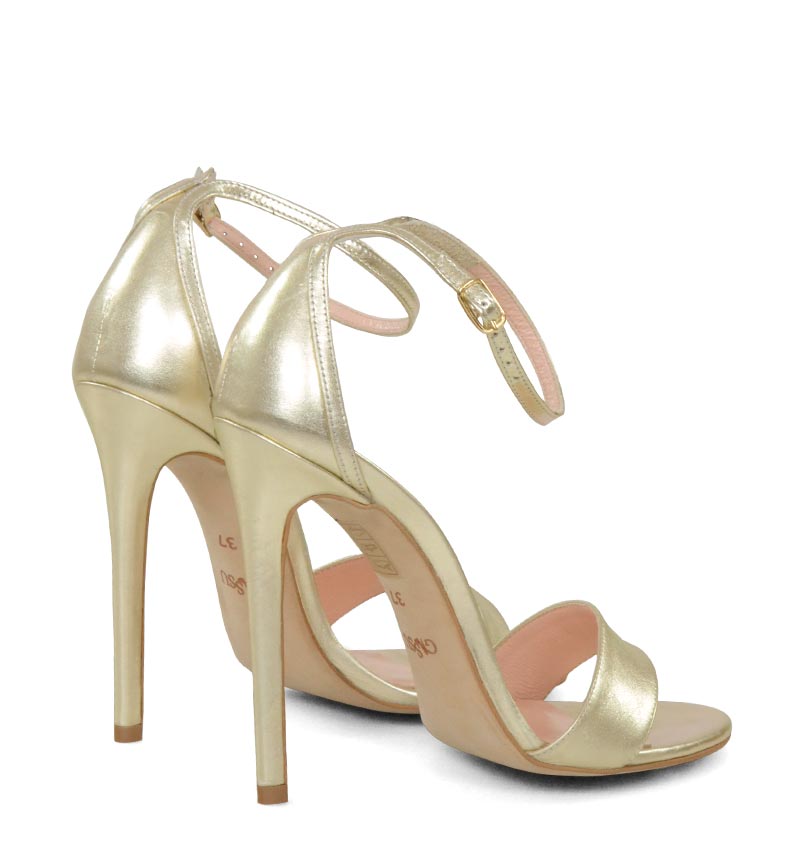 NATALIE – Złote wysokie sandałki na szpilce. Wysokość obcasa: 11,7 cm (wysokość obcasa jest mierzona w rozmiarze 37). Czarne sandałki na szpilce dzięki swojej wysokości wysmuklają stopę, podkreślając jej delikatność. Zakryta, nieco mocniej wykrojona pięta i pasek nad kostką dodatkowo optycznie wysmuklają sylwetkę buta. Sandałki są wykonane z złotej skóry licowej, która doskonale układa się do stopy. Buty przeznaczone dla Pań dobrze czujących się w ekstremalnie wysokich obcasach. Tęgość butów: F 1/2. Wnętrze butów i wkładka wykonane są ze skóry naturalnej.