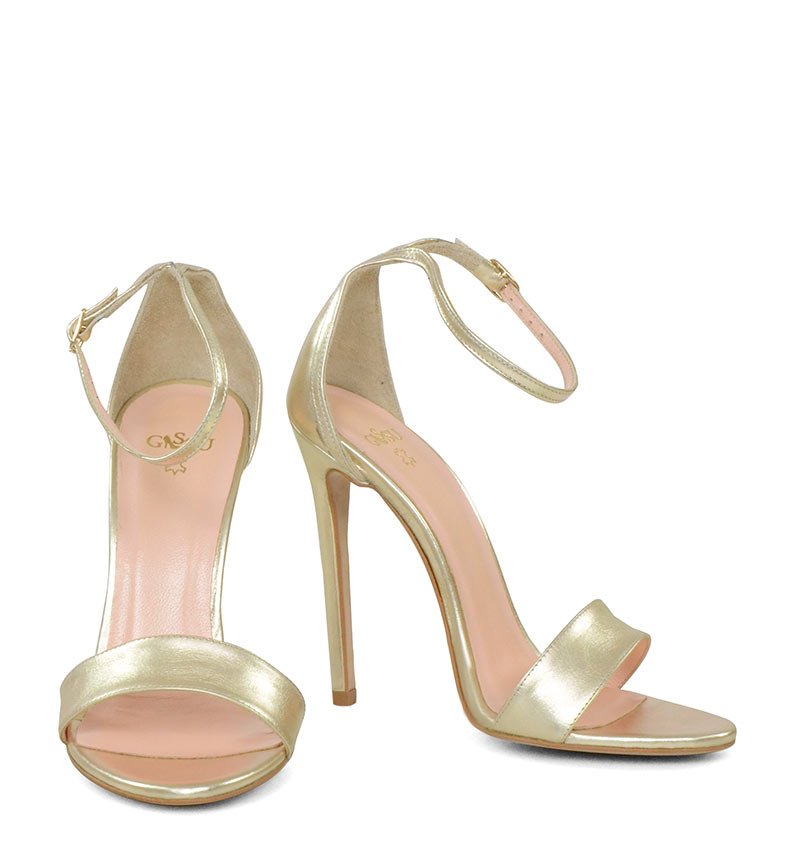 NATALIE – Sandały na wysokiej szpilce złote z licowej skóry