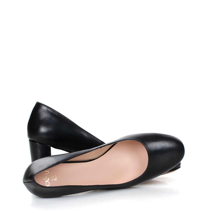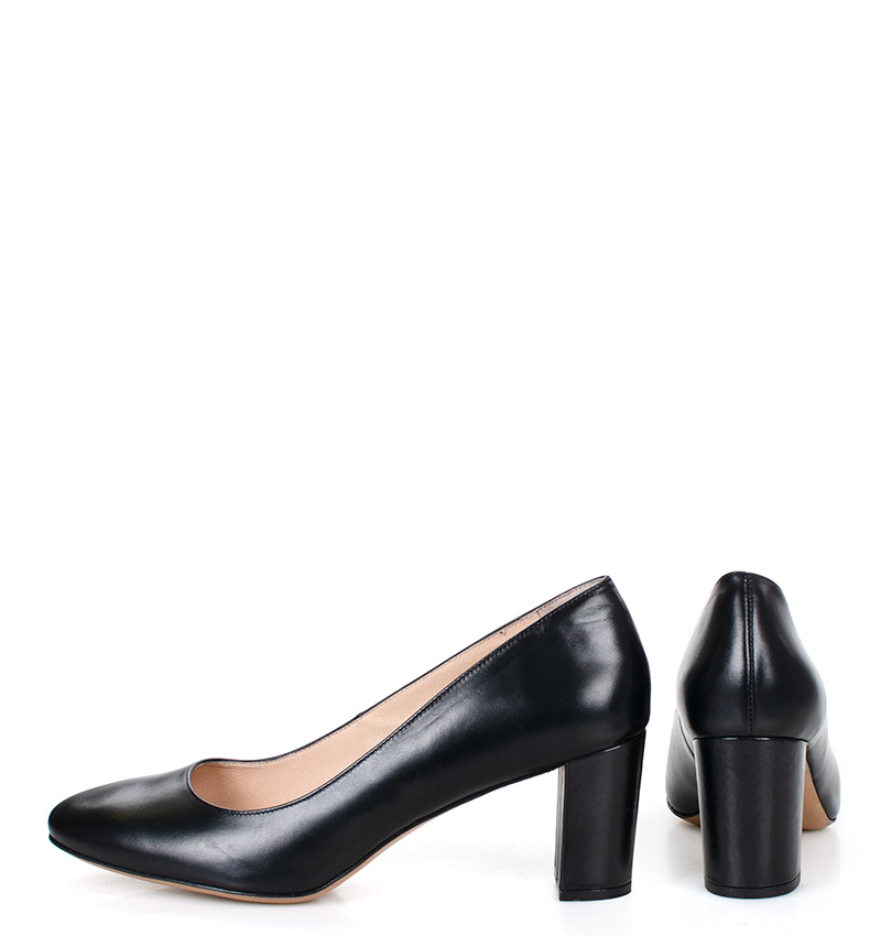 NORMA – Czarne czółenka na grubym słupku o wysokości 7,5 cm (wysokość obcasa jest mierzona w rozmiarze 37). Czubek okrągły. Buty wykonane z naturalnej skóry licowej. Wysokość i szerokość obcasa sprawia, że są to bardzo wygodne czółenka. Tęgość butów: F 1/2. Wnętrze butów i wkładka wykonane są ze skóry naturalnej.