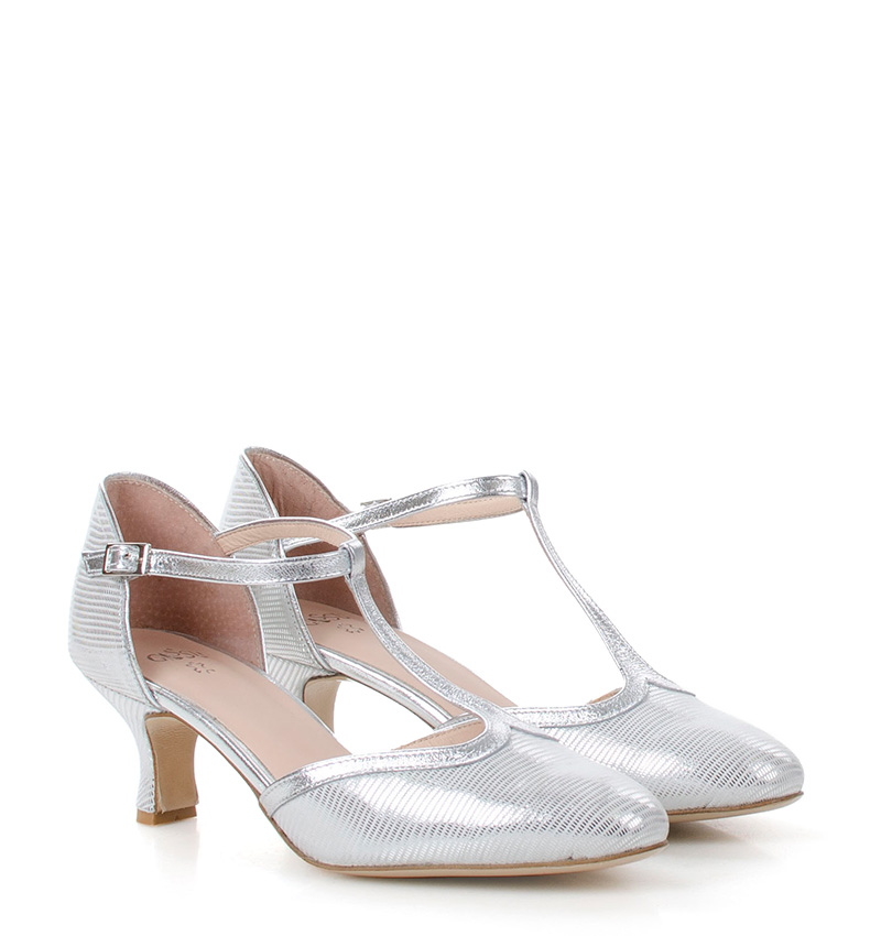 OLIVIA – srebrne czółenka, które łączą taneczną finezję z wyrafinowaną elegancją. Ten model to kwintesencja stylu dla kobiet, które cenią sobie nie tylko piękno, ale i funkcjonalność. Subtelny pasek t-strap przyciąga spojrzenia, dodając sylwetce lekkości i retro uroku, a lśniące wykończenie w odcieniu chłodnego srebra sprawia, że buty stają się prawdziwą biżuterią dla stóp. Zaprojektowane z myślą o tańcu, czółenka OLIVIA sprawdzają się nie tylko na parkiecie – to również idealna propozycja dla Panny Młodej, na koktajlowe przyjęcie, czy wieczór z przyjaciółkami. Obcas o wysokości 5,5 cm (w rozmiarze 37) optycznie wysmukla sylwetkę, nie rezygnując przy tym z komfortu i stabilności. Miękka skórzana podeszwa pracuje z każdym Twoim krokiem, dodając płynności ruchom, a dzięki elastyczności i lekkości – pozwala zapomnieć, że w ogóle masz buty na sobie. To obuwie stworzone do długich, tanecznych wieczorów i romantycznych spacerów po parkiecie. Wysokiej jakości skóra naturalna, z której wykonano cholewkę, nie tylko wygląda luksusowo, ale także pięknie układa się na stopie, gwarantując trwałość na wiele sezonów. Regulowana sprzączka pozwala dopasować but do indywidualnych potrzeb, a starannie wyprofilowany fason wspiera prawidłową postawę i komfort podczas ruchu. OLIVIA to modowy manifest dla kobiet, które chcą czuć się wyjątkowo – niezależnie od tego, czy są na parkiecie, czy na wyjątkowym wydarzeniu. Z tym modelem każdy krok staje się pewniejszy, lżejszy i bardziej stylowy.