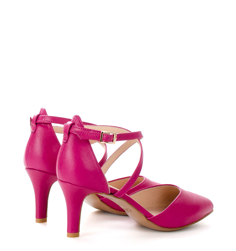 REBEKA – różowe szpilki z zapinanymi na krzyż paseczkami, które dobrze trzymają stopę. Nosek butów jest szpiczasty. Cholewka i wkładka wykonane są z naturalnej skóry licowej, co zapewnia wysoką jakość i trwałość materiału. Wysokość obcasa wynosi 6,5 cm, co zapewnia stabilność i wygodę butów, sprawiając, że są idealne do codziennego użytku. Tęgość butów to F 1/2. Buty wygodne, stabilne i eleganckie, nadające się zarówno na co dzień, jak i na bardziej formalne okazje.