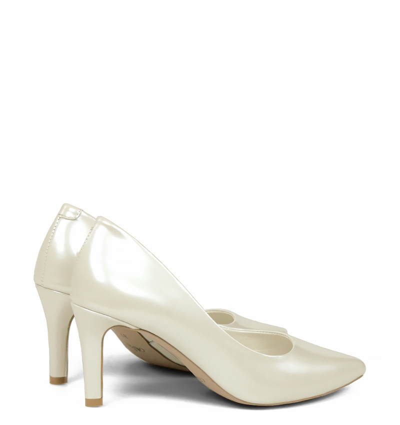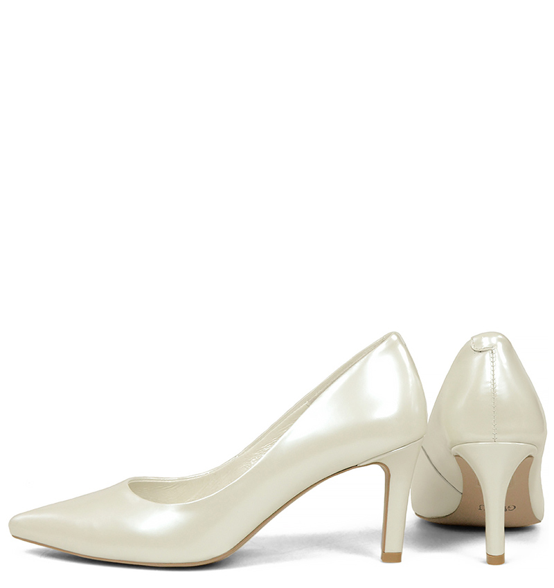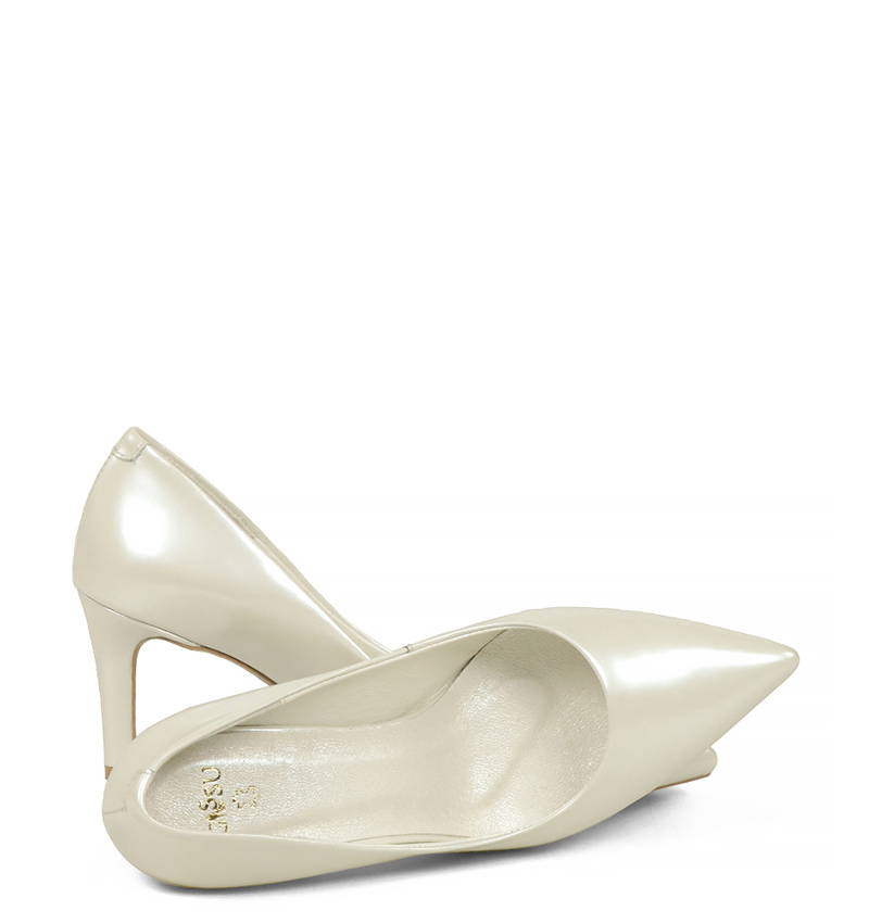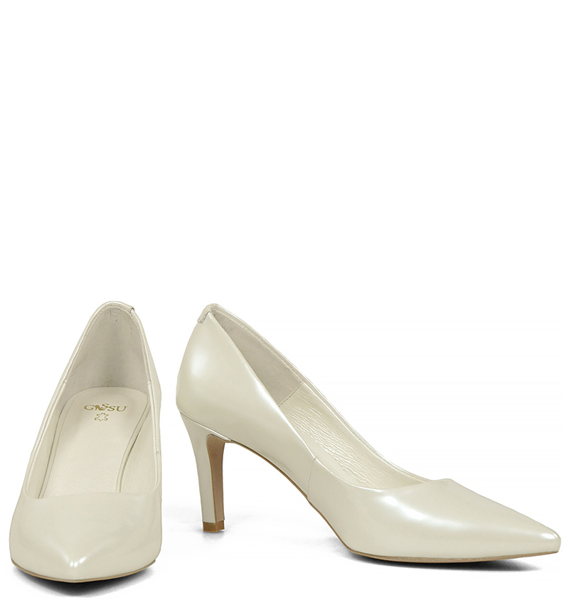 RIKO – Ecru czółenka na szpilce z perłowej lakierowanej skóry