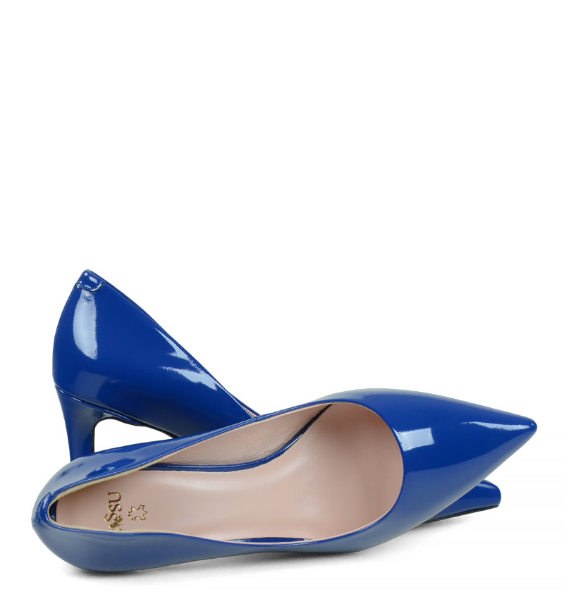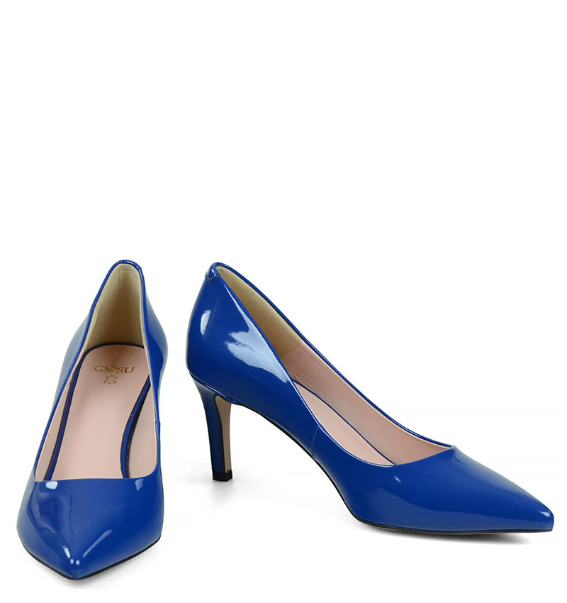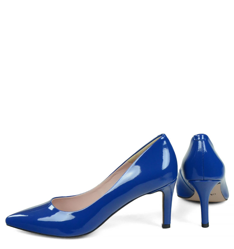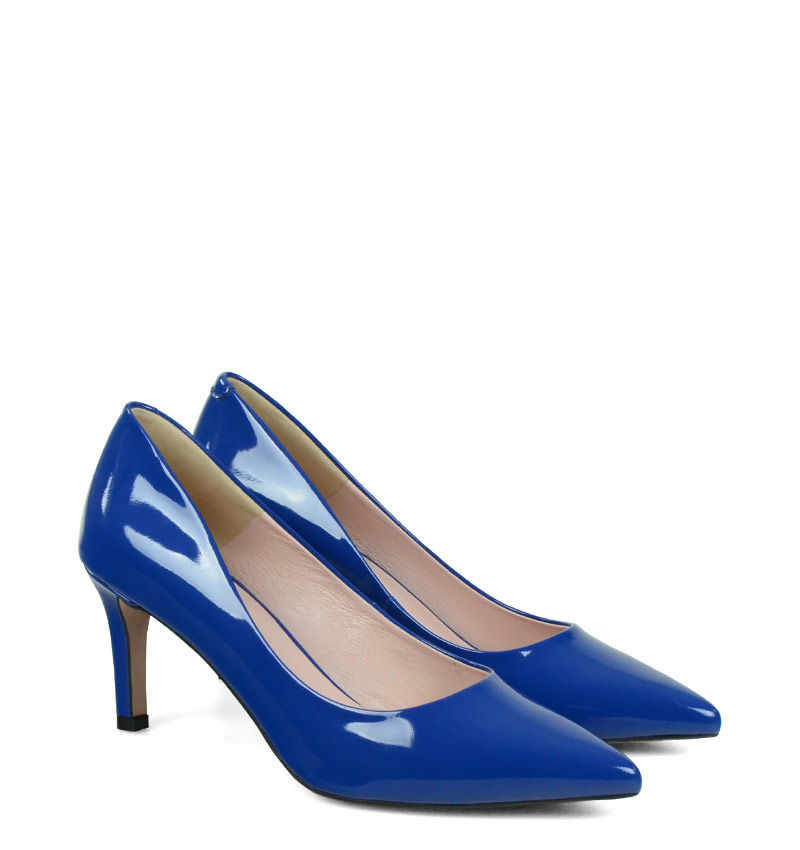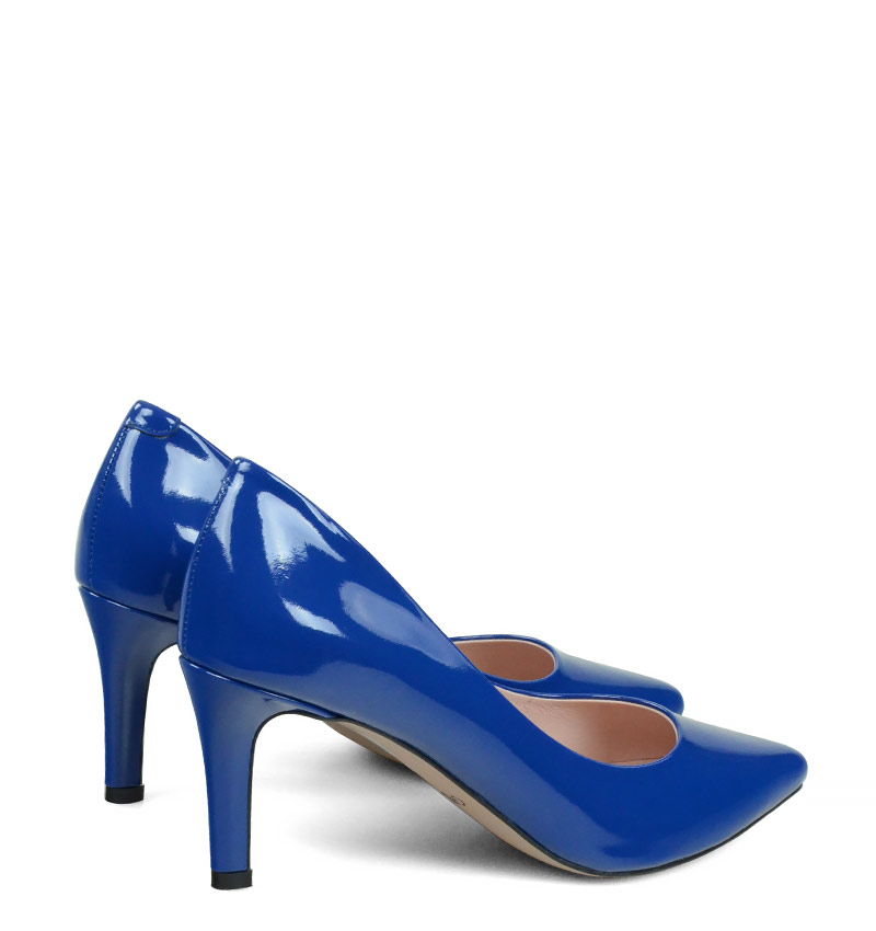 RIKO – Niebieskie czółenka na szpilce z lakierowanej skóry