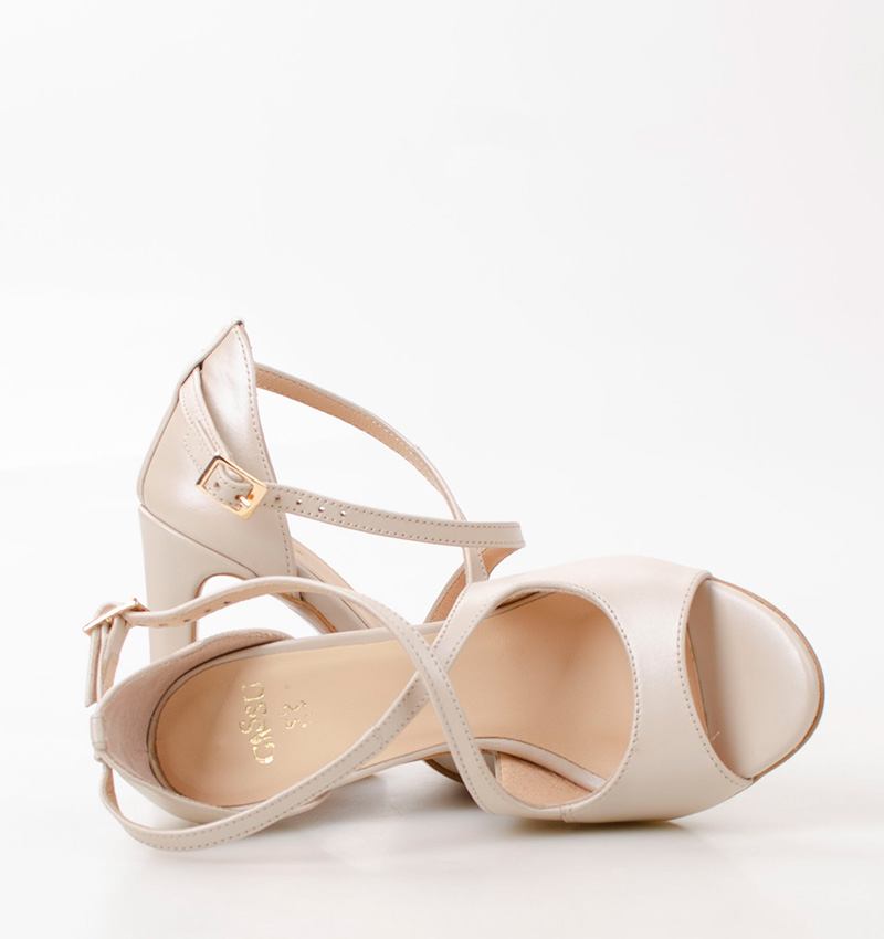 SANSEI  Sandałki na szpilce w kolorze beż perła. Wykonane z licowej skóry.  Obcas o wysokości 9,5 cm (wysokość obcasa jest mierzona dla rozmiaru 37).