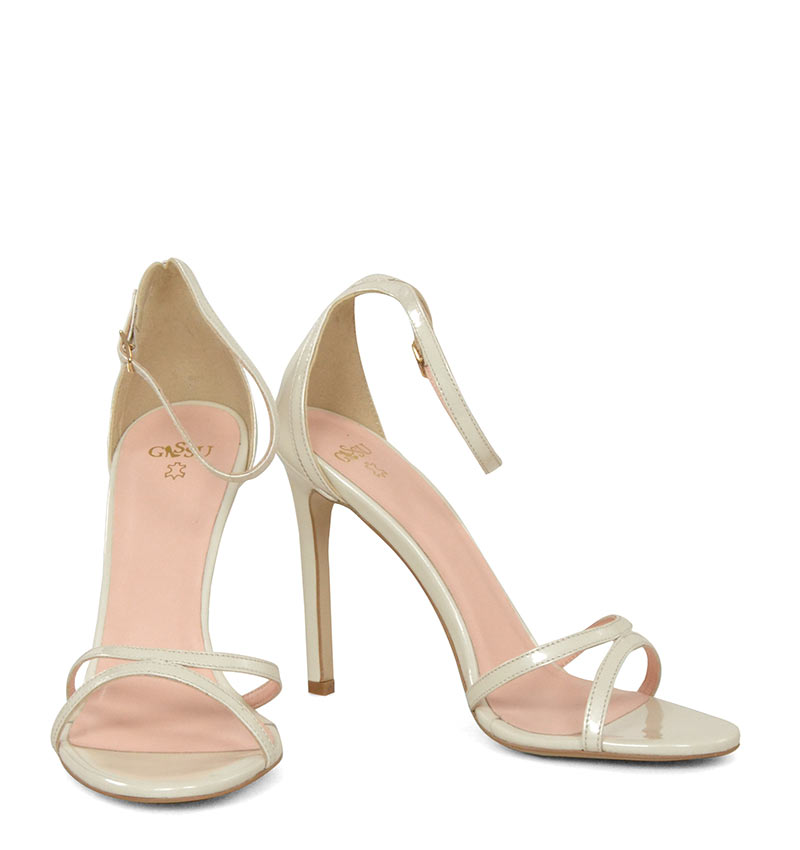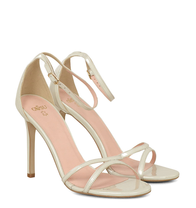 SOPHIA – Sandały ecru na szpilce z lakierowanej skóry